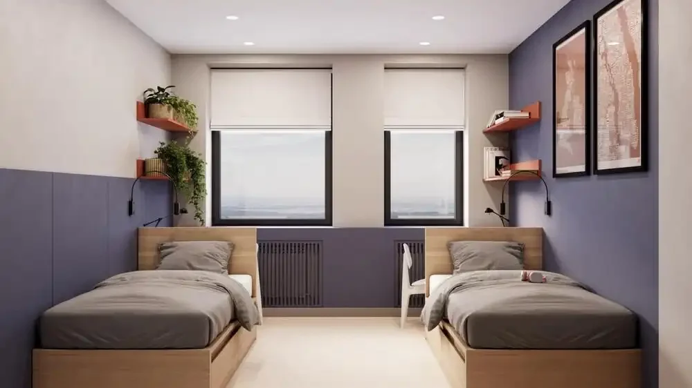 Комнаты будут пяти типов, включая семейные варианты. В каждом жилом блоке появятся собственный санузел и кухонная зона — без очередей в душ и «битв» за плиту.